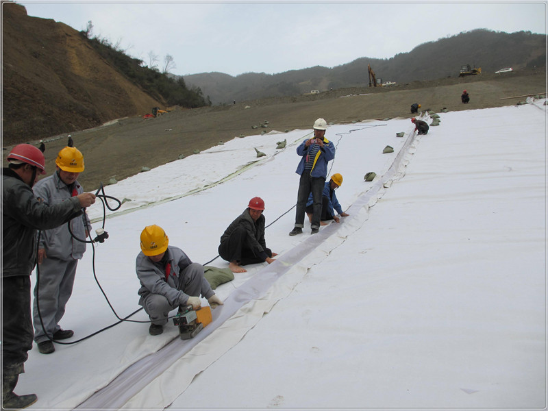 復合土工布在現場存放要避免紫外線的照射,一般應搭設臨時存放遮棚。如果復合土工布受紫外線照射較長,鋪膜前應進行必要的物理力學及防滲性能測試,檢查合格后才能使用。